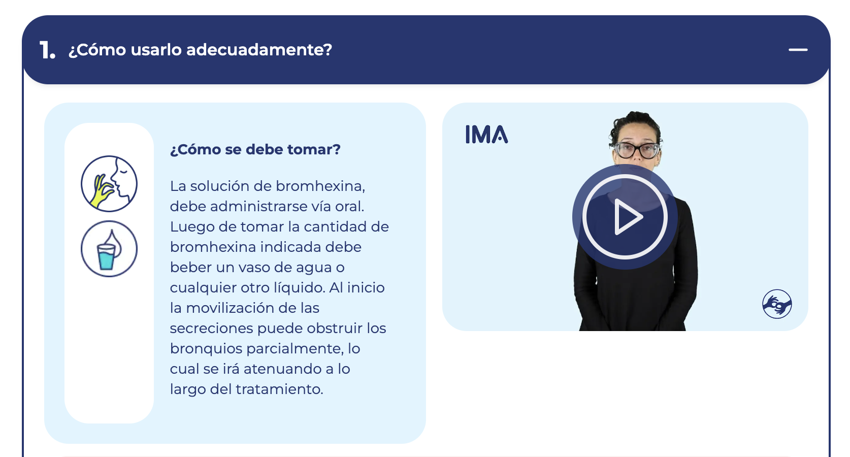 IMA significa INFORMACIÓN del MEDICAMENTO ACCESIBLE.